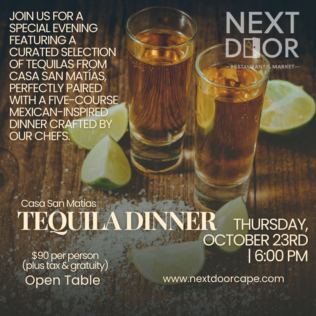 Join us for an evening featuring a curated selection of tequilas from Casa San Matías, perfectly paired with a five-course Mexican-inspired dinner crafted by our chefs.